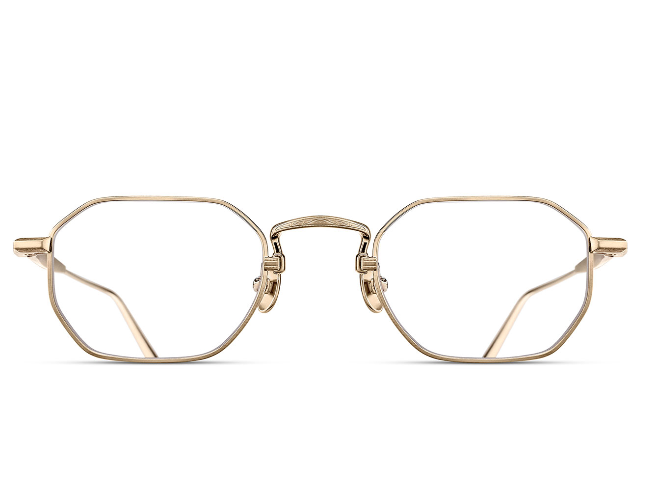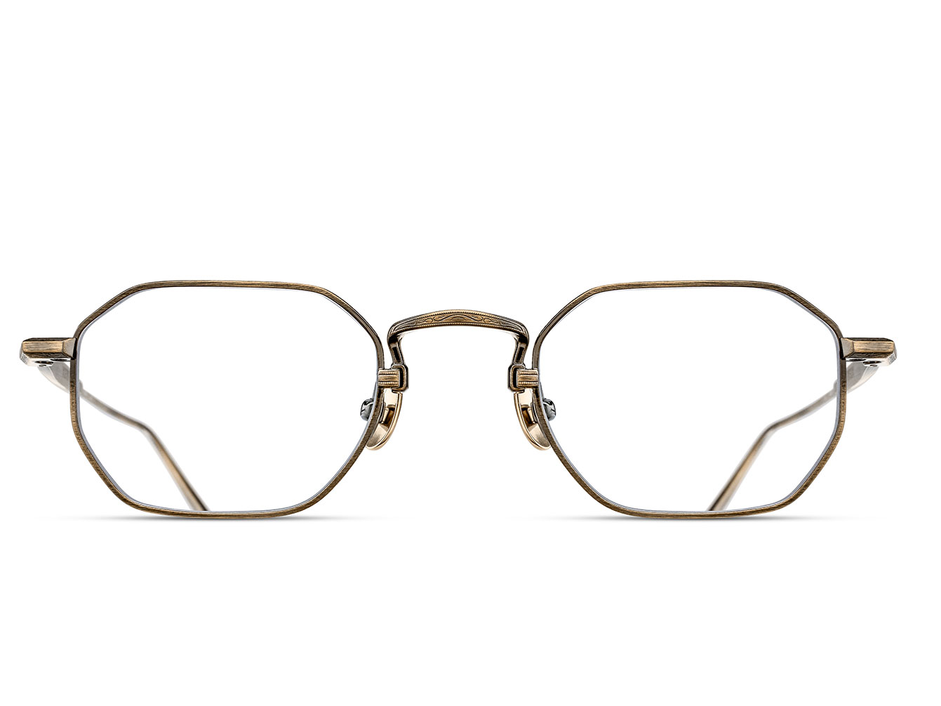 The M3166 is a modern geometric silhouette crafted in high-grade lightweight titanium — its clean lines and precise angles echoing the industrial metalwork of the late 1800s that shaped Mitsuhiro Matsuda’s design philosophy. Finely engraved temples reveal the depth of detail within every Matsuda optical frame, while the titanium construction delivers balance and all-day comfort.