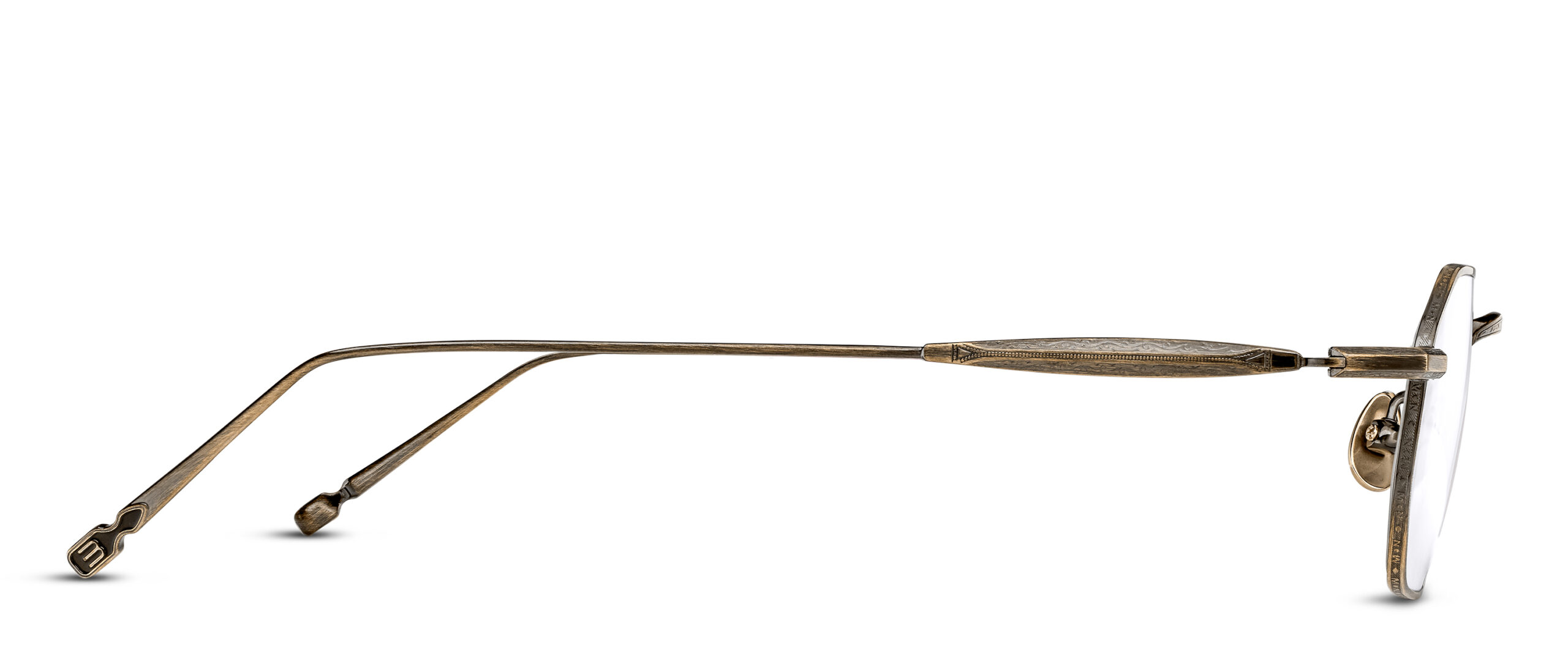 Material: High-grade lightweight titanium Feature: Finely engraved temples Lenses: Clear (prescription-ready) Origin: Handmade in Japan Includes: Signature case and microfiber cleaning cloth